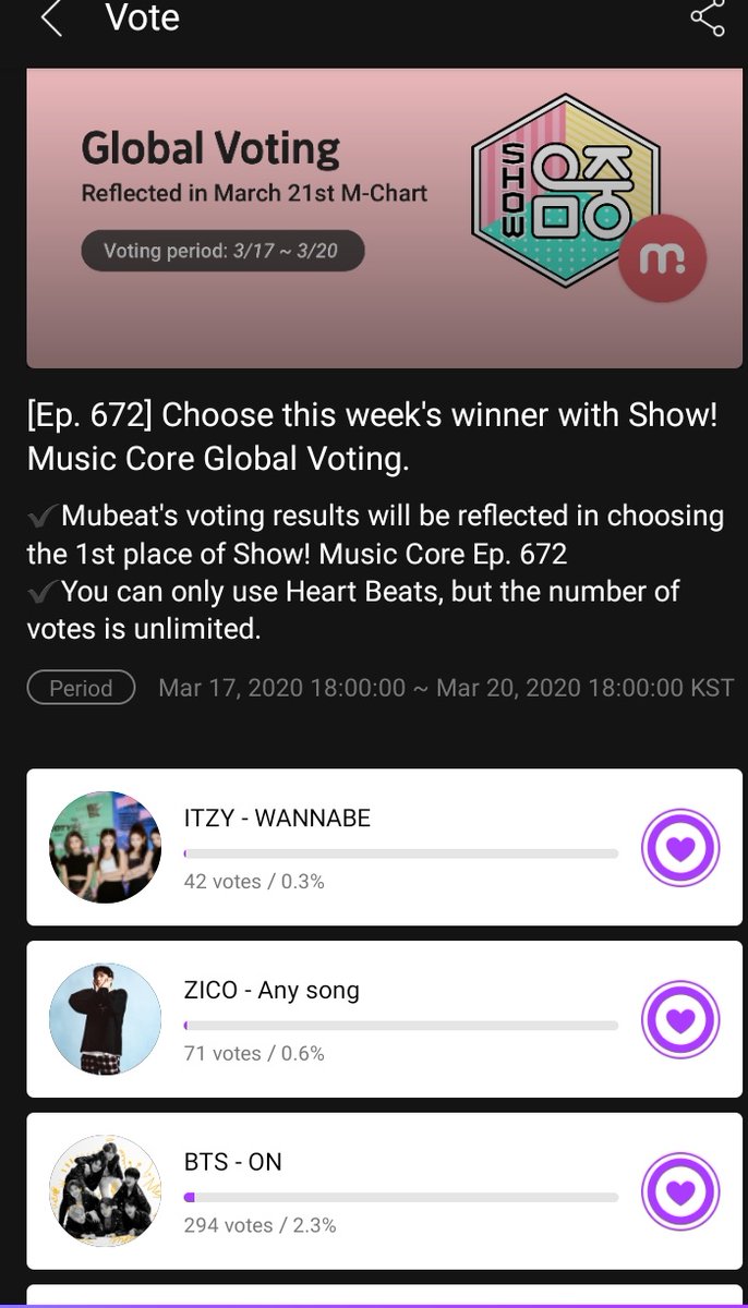 Bts Charts Translations On Twitter Music Core Criteria Now Includes Voting On Mubeat Open To Global Fans 3 17 3 20 Votes Are Reflected On 3 21 Show So Vote For On If We Want