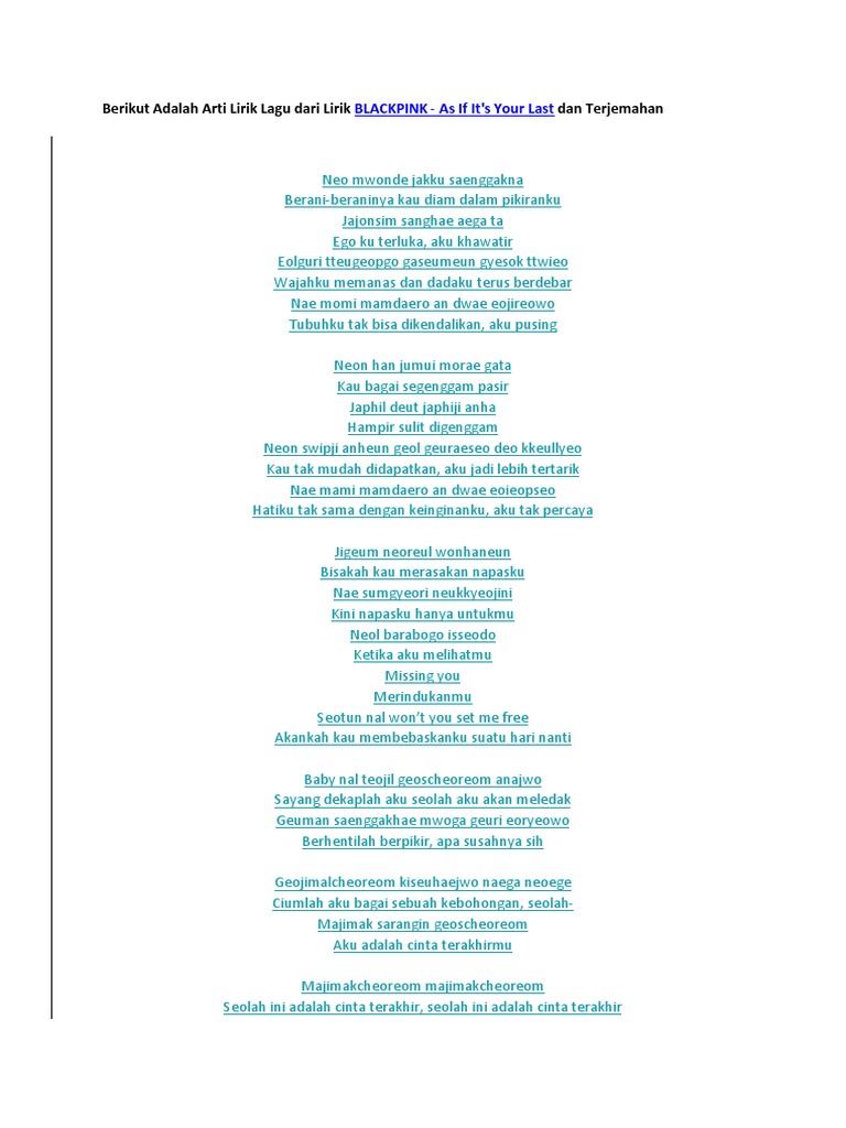 Lirik Lagu Blackpink As If Its Your Last Pdf