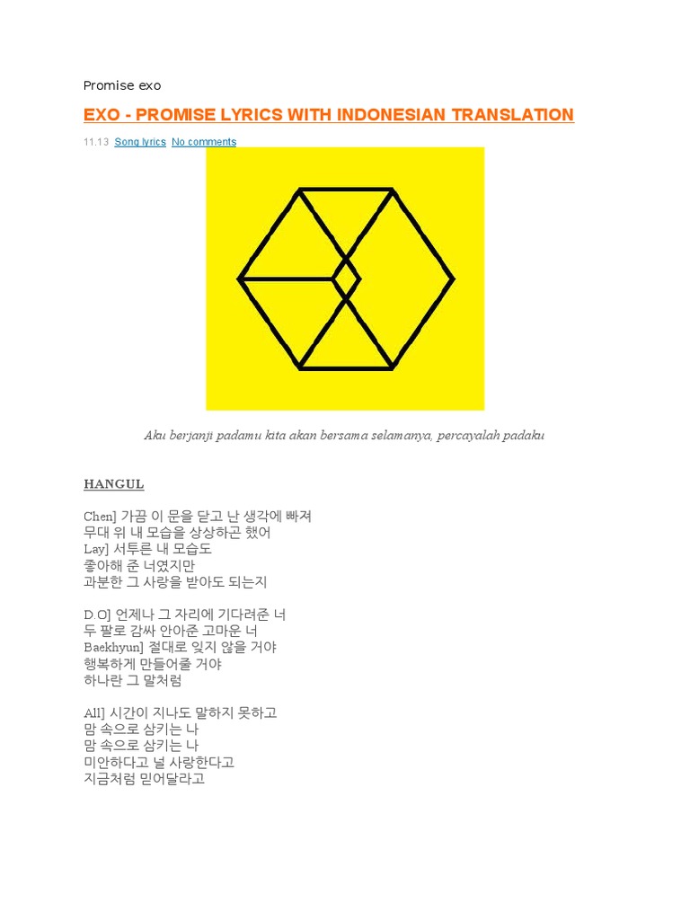 Tersedia lirik lagu lengkap beserta data untuk para pengguna dan. SonoraID - Lagu yang berjudul Promise ini adalah lagu yang dinyanyikan oleh boyband asal Korea Selatan EXO yang dirilis pada tahun 2015 yang lalu. Hari ini 267 DO.